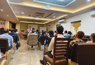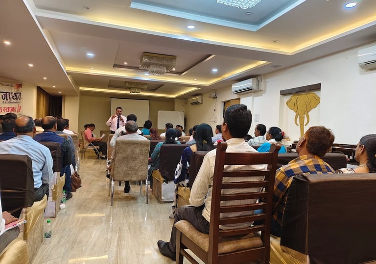 Konark Hotels meeting hall is a designated space used for gatherings, discussions, conferences, or events. It typically features seating arrangements, audio-visual equipment, and a stage or podium to facilitate communication among participants in a professional or formal setting.