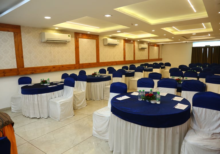 Konark Hotels banquet hall is a large space designed for hosting formal events, such as weddings, parties, and receptions. It includes dining facilities, decorative interiors, and seating arrangements to accommodate guests comfortably for celebrations and gatherings..